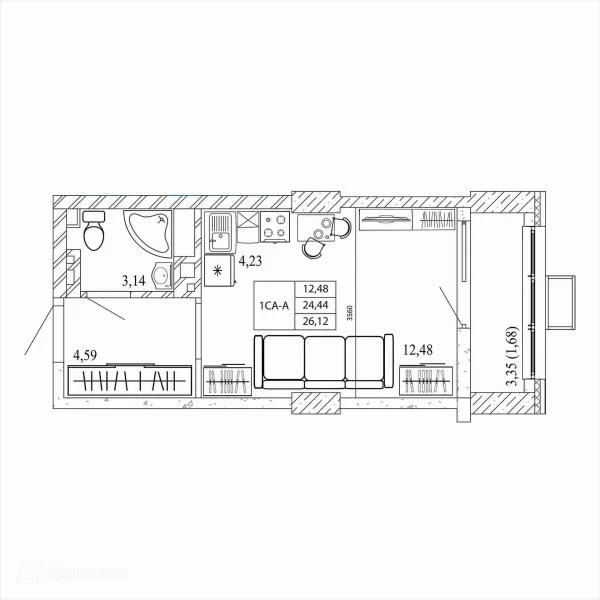 1 комн. квартира в Ростове-на-Дону в ипотеку от 45 233 руб/месяц
