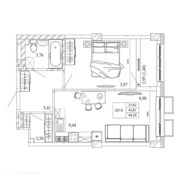 2 комн. квартира в Ростове-на-Дону в ипотеку от 45 196 руб/месяц