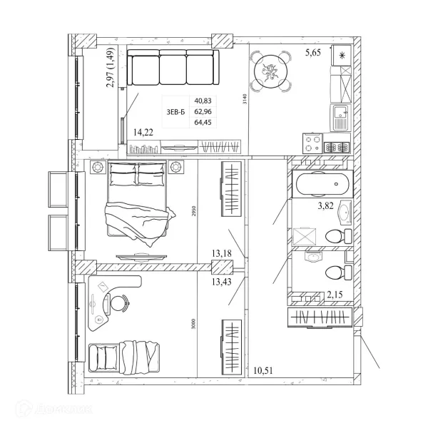 3 комн. квартира в Ростове-на-Дону в ипотеку от 58 939 руб/месяц