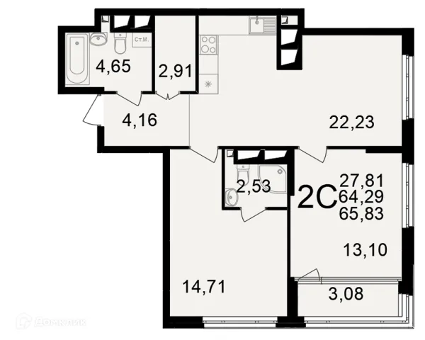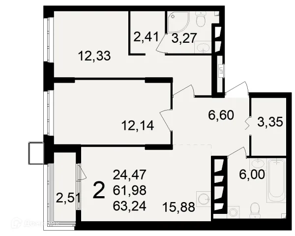 2 комн. квартира в Рязани в ипотеку от 63 047 руб/месяц